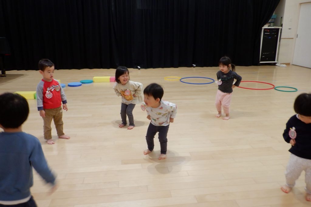 焼いている間は、ホールでフープ・鉄棒・トンネルなど使ってサーキットをしました。