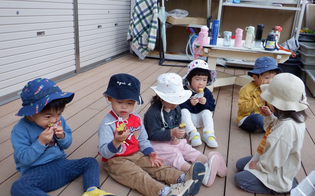 焼きたてホクホクなサツマイモを、幸せそうな顔で食べていました(o^―^o)