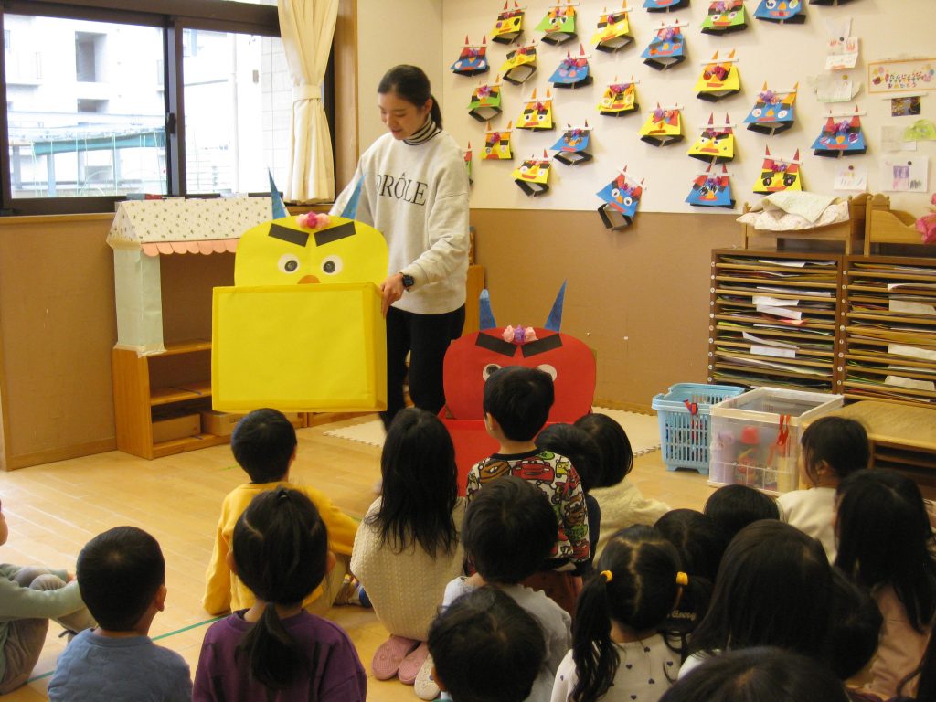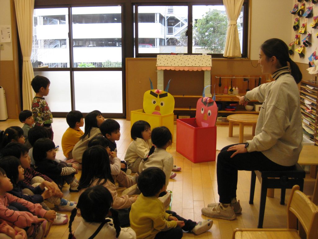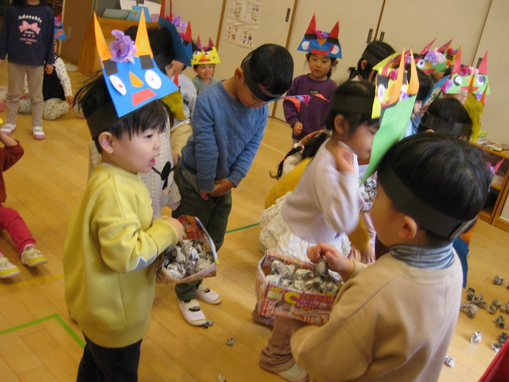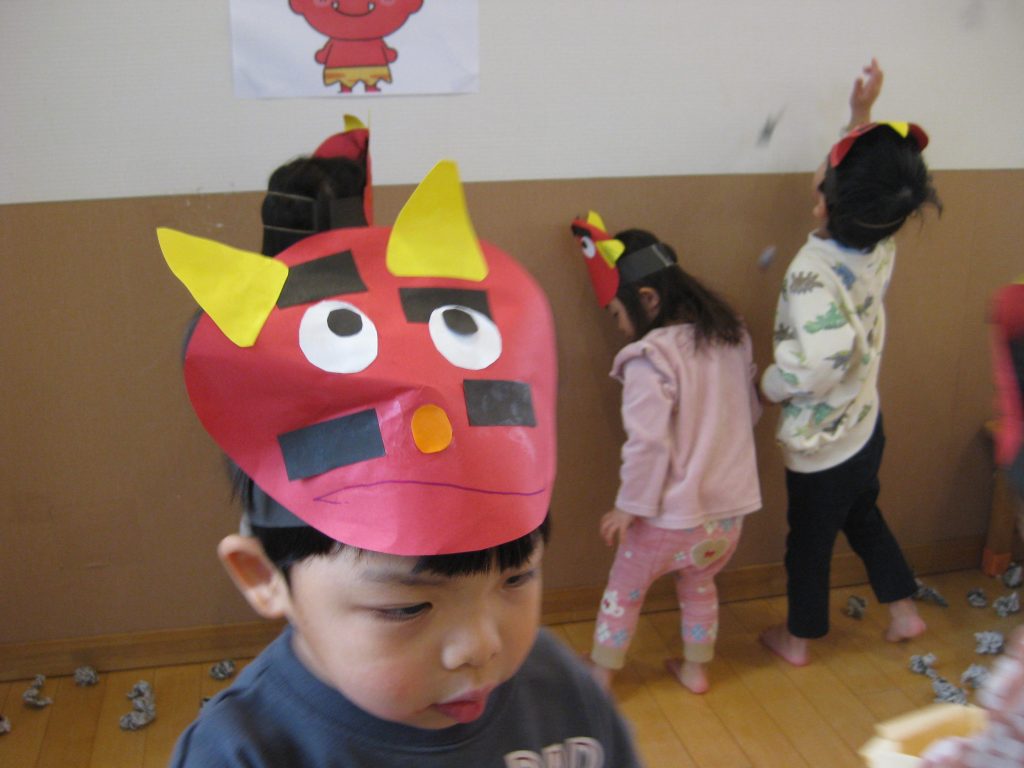今日は、節分です。園のあちこちから「鬼はそと~、福はうち~」の声が聞こえてきました。