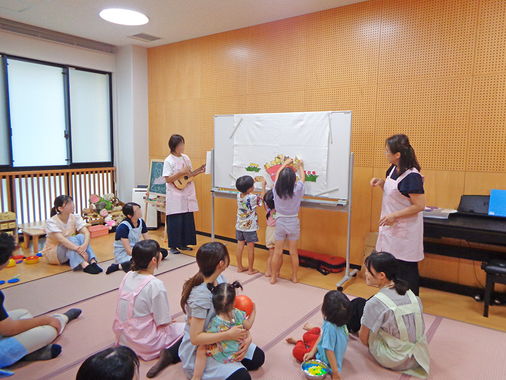 2025年9月14日(日)「第4回 パパとママのこころ育て広場」が開催され、4組のご家族(計17人)が参加してくださいました。親子ふれあいの時間では大きな絵本で種が育まれていく様子を見守ったり、ふれあい体操を楽しみました。親子分離の時間では、お子さん方はプレイルームで担当の学生と共にのびのびと自由に遊び、楽しむ様子を見せてくれました。保護者の方々は、子育てに関する日ごろの想いを、本学教員である臨床心理士・公認心理師のもと、お互いに共有され、気持ちを新たにしておられました。