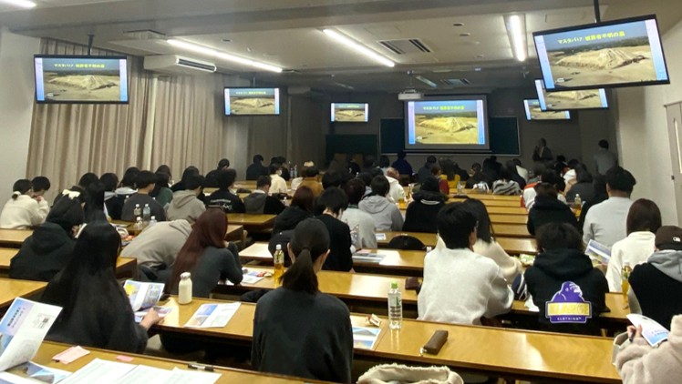 この講演会は歴史文化学会の主催によるものです。歴史文化学会は、歴史学科と歴史遺産学科の学生が自主的に運営する学会であり、この講演会に関しても、学生たちが話し合ってテーマや講師を決めました。当日に向けて、互いに協力しながら準備を重ね、開催にいたりました。