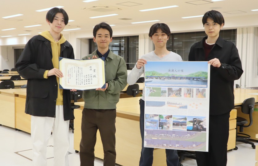 受賞したのは、北川 遥也さん、建本 真孝さん、堂脇 遥人さん、平田 瑛盛さんによる「波護人(なごり)の家」です。