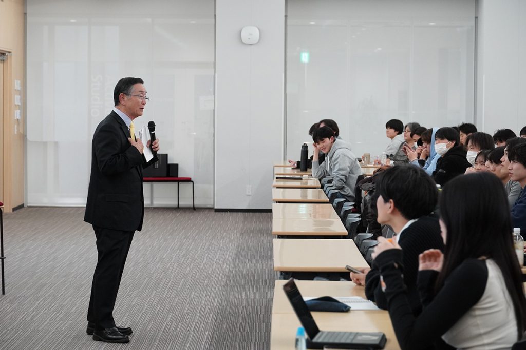 2025年11月25日(火)、実業家・宗次德二氏を講師に迎え、京都橘大学 経営セミナー2025『挑戦の先に見えたもの-CoCo壱番屋伝説の創業者が語る経営と生き方-』を開催しました。本セミナーは社会やビジネスの第一線にふれる学びの機会として、京都橘大学経営学部が主催したものです。