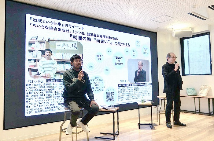 (河野) 今日は「就職の軸 面白いの見つけ方」というタイトルで、三島邦弘さんの『出版という仕事』刊行記念トーク・イベントを開催いたします。