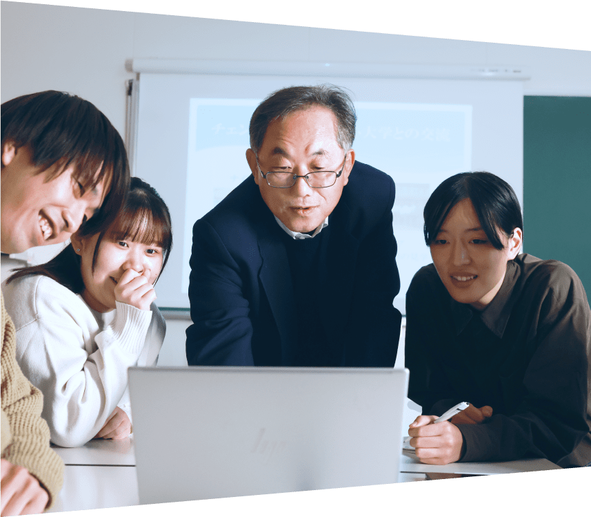 発達教育学部の倉持先生が大切にしているのが作家・井上ひさしの「むずかしいことをやさしく、やさしいことをふかく、ふかいことをおもしろく」という言葉。この発想を軸に、教育や、「楽しく、わかる」授業とは何かを模索している。そんな倉持先生が教師を目指す学生たちのために力を入れているのが海外の学校視察だ。学生とともにタイやカンボジア、台湾、ベトナムなど、アジア各国の教育現場を訪れ、日本とは異なる教育の在り方を研究してきた。「自分が『当たり前』と思っていた教育を疑うことが、新しい学びを生み出します」。実際に、海外実習に参加した学生は、教育に対する新しい視点を得て、日本の教育のあり方を見直すようになるという。「例えば、日本では保育園・幼稚園から小学校に上がるときに、新しい環境に慣れることが難しい子どももいて苦労しています。一方、タイでは小学校の敷地内に保育所があり、日常的な交流があるので、小学校への移行がスムーズなんです。これに衝撃を受けた学生は、タイの保育をテーマに卒業論文に取り組んでいます」海外実習での子どもたちとの交流は、学生が「勉強の楽しさ」の原点を思い出すきっかけにもなっている。倉持先生はカンボジアの学校で出会った子どものエピソードを語った。「日本とカンボジアには教育水準に格差があり、例えば識字率にも差があります。彼らは文字が読めるようになっただけで、街の看板が理解でき、自分の世界が広がるのです。その瞬間の感動を知っているからこそ『勉強が楽しい』と言います。その言葉を聞いた学生は『たしかに自分にもそういう体験があった』と、自身の学びの原体験を思い出しました」。学ぶ喜びを純粋に感じている子どもたちと触れ合うことで「学ぶことの意義」を見つめ直す機会になっているのだ。