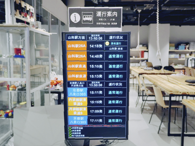 2回生ながら独自の研究に情熱を注ぐ樋口さん。ハンドベルの自動演奏装置を開発し、現在は新たにバスの運行情報システムの構築にも積極的に取り組んでいる。ハンドベル演奏装置の開発は、「多くの人が必要になるハンドベル演奏を、一人でも楽しめるようにしたい」という発想から生まれたもの。高校時代からモノづくりが好きだったという彼は夢中になって開発作業に取り組み、2オクターブ分のハンドベルを自動で鳴らせる装置を完成させた。2024年4月、樋口さんはこの作品を西日本最大級のモノづくりイベント「Maker Faire Kyoto 2024」に出展。そして、同年9月には日本最大の規模である「Maker Faire Tokyo 2024」にも出展するなど学外での発表にも力を入れる。「『Maker Faire』は誰でも希望すれば出展できるものではなく、審査があります。そのため、学生が京都だけでなく東京にも出展できたことは非常に価値がある」と杉浦先生は話す。ヒューマンインターフェース学会では優秀プレゼンテーション賞を受賞し高い評価を獲得した。現在は、学生自治会長からの「通学バスをもっと利用しやすいものにしたい」という相談をきっかけに、バスの運行情報システムの開発に着手している。京阪バスのロケーションシステムやYahoo!路線情報を活用し、リアルタイムで大学発着バスの位置情報や遅延状況を解析するプログラムを開発。加えて、多くの学生の乗換先となる電車の運行状況がわかるようにまでなっており、「乗客が正確な運行状況を把握できるシステム」の実現を目指している。
