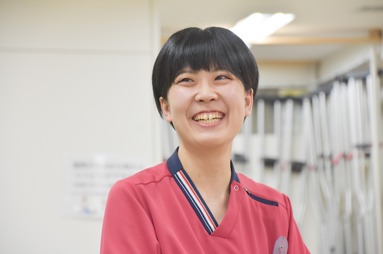 天鷲/以前よりも出勤人数を増やし、患者さん一人ひとりにかけられる時間を長く取るよう努めています。入院されている患者さんが体を動かす時間を長く取ることで、できるだけ早く、良い状態で、ご自宅に帰っていただきたいと思っているからです。環境から整備し、患者さんには質の高いリハビリテーションを提供することを常に心がけています。