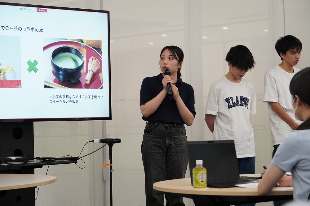 万波/私は旅行が大好きで、将来は観光系の仕事に就きたいと考えています。大手航空会社のJALさんと「京都のオーバーツーリズム」問題に取り組むというテーマそのものに強い関心があり、履修前からワクワクドキドキした気持ちでした。プロジェクトでは「お茶の京都」を担当しました。