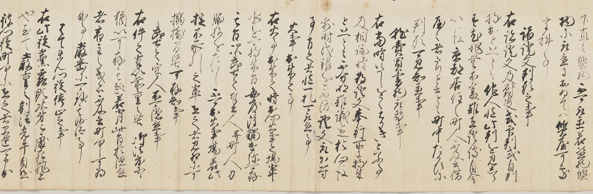 江戸幕府の京都所司代板倉重宗(周防守)が、元和8年(1622)8月に出した9箇条の法令で、1巻にまとめられています。元和8年11月の法令(全文7箇条、1巻)や、寛永6年10月の法令(全文5箇条、1巻)とともに、後年「板倉二十一か条」と呼ばれ、江戸幕府の都市基本法として認識されたものです。江戸時代初めの都市京都が抱える様々な問題に、所司代の板倉が対処しようとして、これらの法令が出されたのでしょう。
