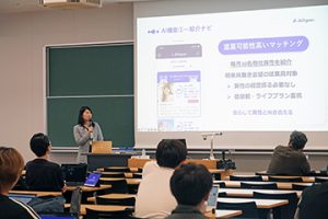 学科の垣根を越え、企業や行政からの課題に取り組みます。情報工学に関わる専門的な知識や技術だけにとらわれることなく、他学科の学生と協働することで、多様な価値観や柔軟な視点を育みます。学生同士がそれぞれの専門知識を融合させて、新たな価値を創造していくプロジェクト経験は、チーム運営のスキルを大きく伸ばします。