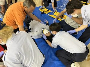 とてもリアルな外傷現場想定のトレーニングをしており、最後には素敵な笑顔がみられ、充実したシミュレーションだったことが伝わってきました。