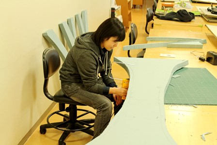 今年は、各大学が「駅周辺の魅力」を再発見するという「ディスカバー・地域」をテーマにした作品を制作しています。本学は、山科駅北側にある琵琶湖疎水の両岸に咲く桜並木をヒントにして、駅の通路を疎水に見立て、桜のトンネルをくぐり抜ける様子をイメージしました。