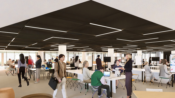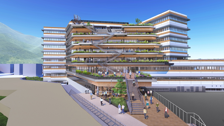 新学部・学科の開設に伴い、新たな教育研究設備として「ACADEMICTERRACE」が2026年3月に完成予定です。学生、教職員、地域、全ての人が自由に、創造的につながり、新たな出会いとイノベーションが生まれる学びのコミュニティをめざします。