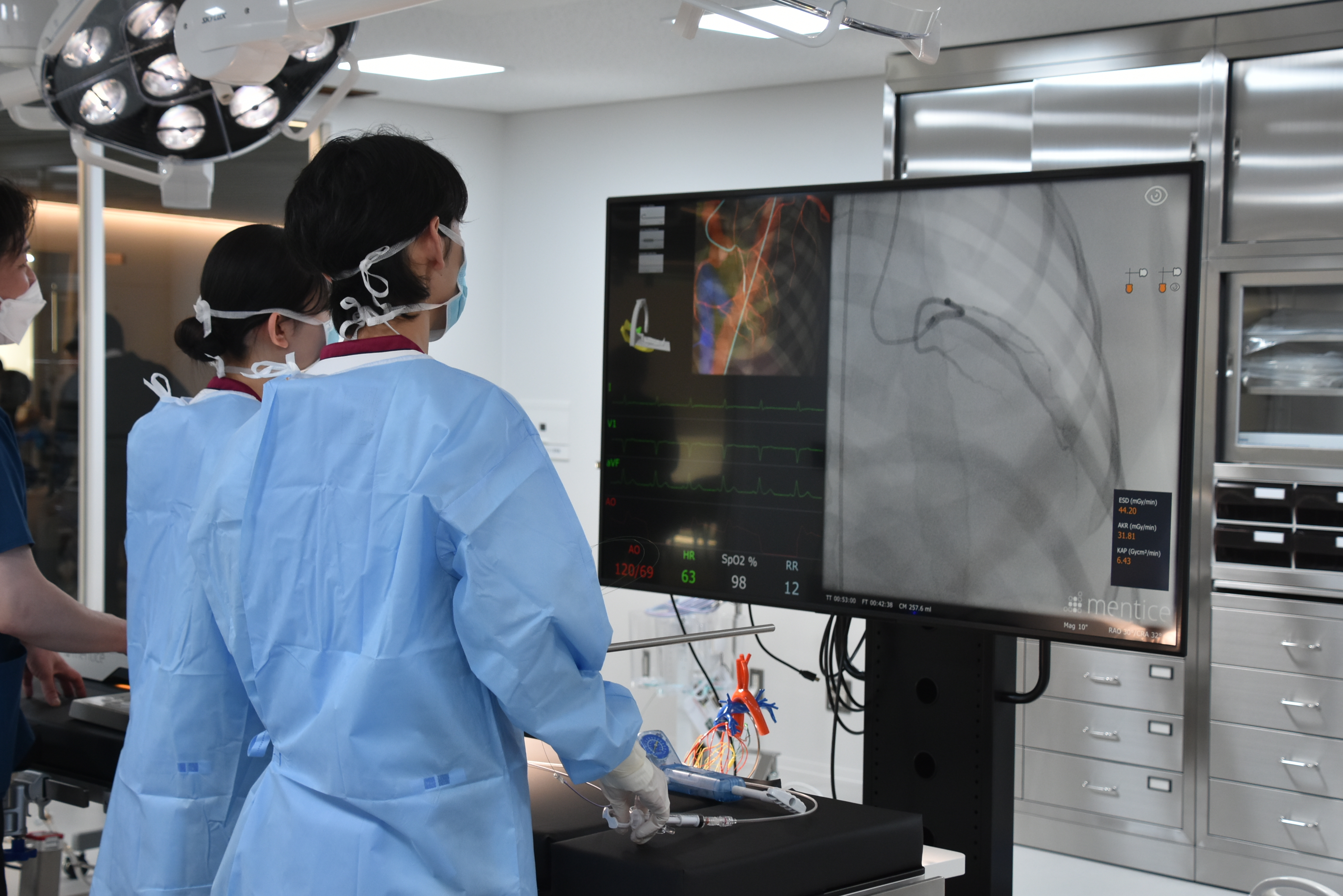 ⼿術⽀援ロボット操作に関する業務や、関⻄の臨床⼯学技⼠養成校では初導⼊となる、VR⾎管内シミュレータ「Mentice VIST G7-03」を使⽤した⼼臓カテーテル治療、⾼度医療機器の操作をはじめ、術野を確認し医師に鋼製⼩物を⼿渡しする直接介助業務などを学びます。