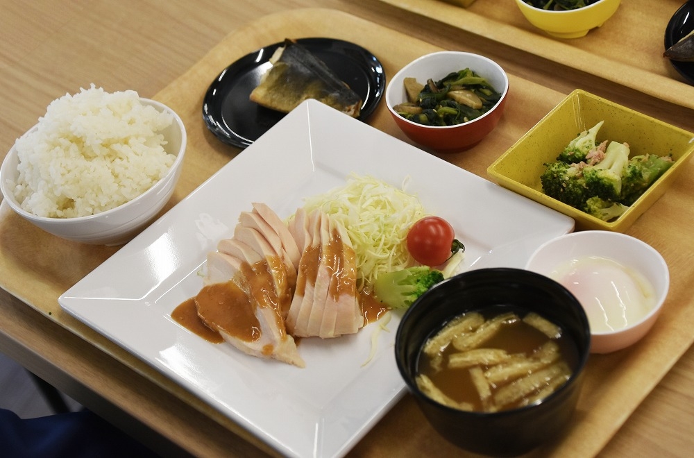 筋⼒・パワーを発揮するための⼗分なタンパク質、エネルギー源を意識したメニュー。筋⾁の修復とパワー向上のために『良質なタンパク質』(⾷材:⿃むね⾁、ほっけ)を、また、強い⾻格づくりのため『カルシウム+ビタミンD』(⾷材:ほっけ、きのこ類)を摂取できる構成としています。また、『抗酸化ビタミン』(⾷材:かぼちゃ、ブロッコリー)により、強い紫外線の酸化ストレスにも対策。
