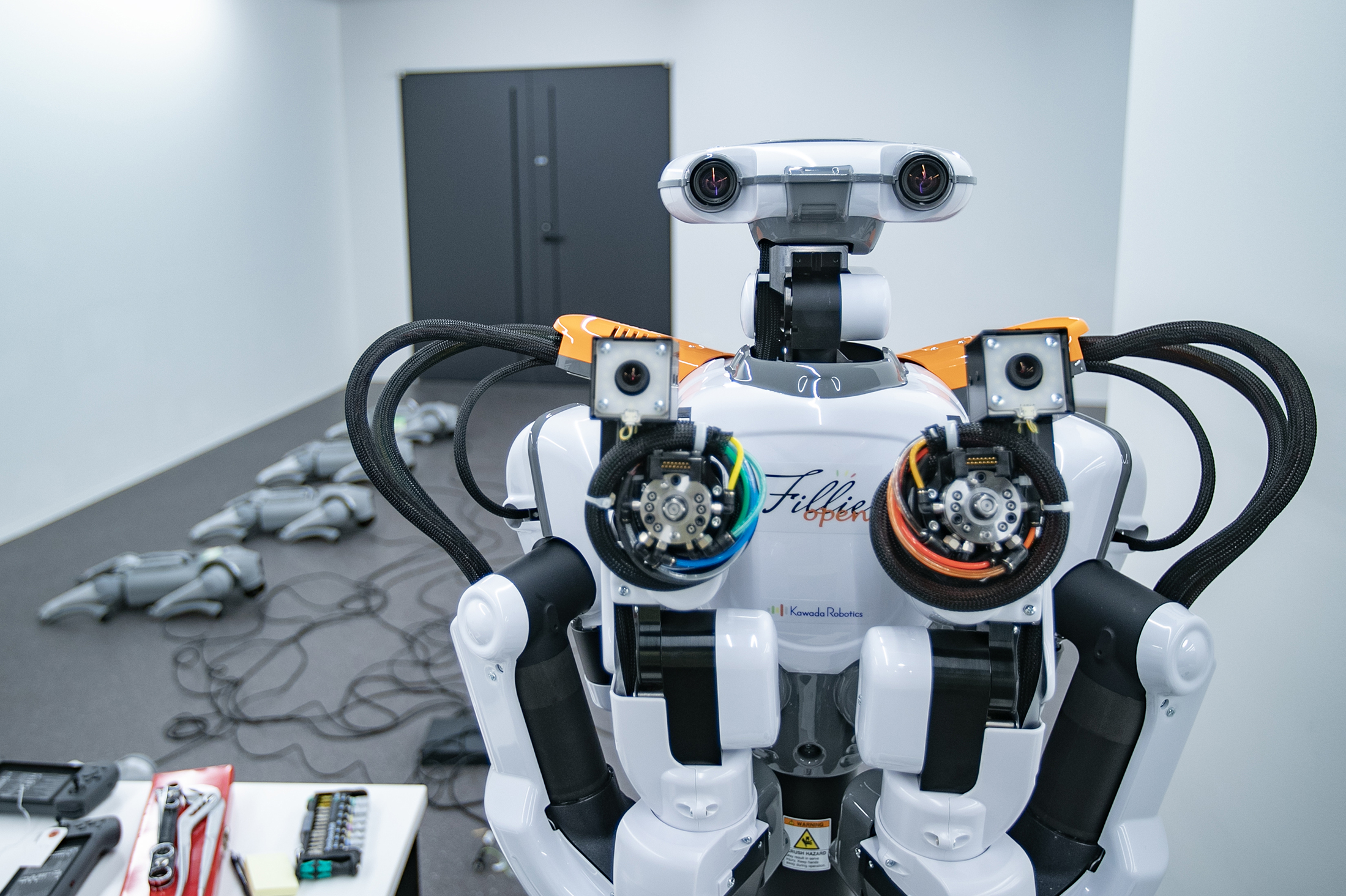 ⼯学部ロボティクス学科では、ロボットを「つくる(機械⼯学)」×「動かす(情報⼯学)」×「社会で活かす(知能情報学)」という3つの軸に重点をおいています。The Factoryでは、1部屋の中で加⼯・製作から動作検証が可能となり、学⽣や教員にとって最適な教育研究が⾏える設備となっています。