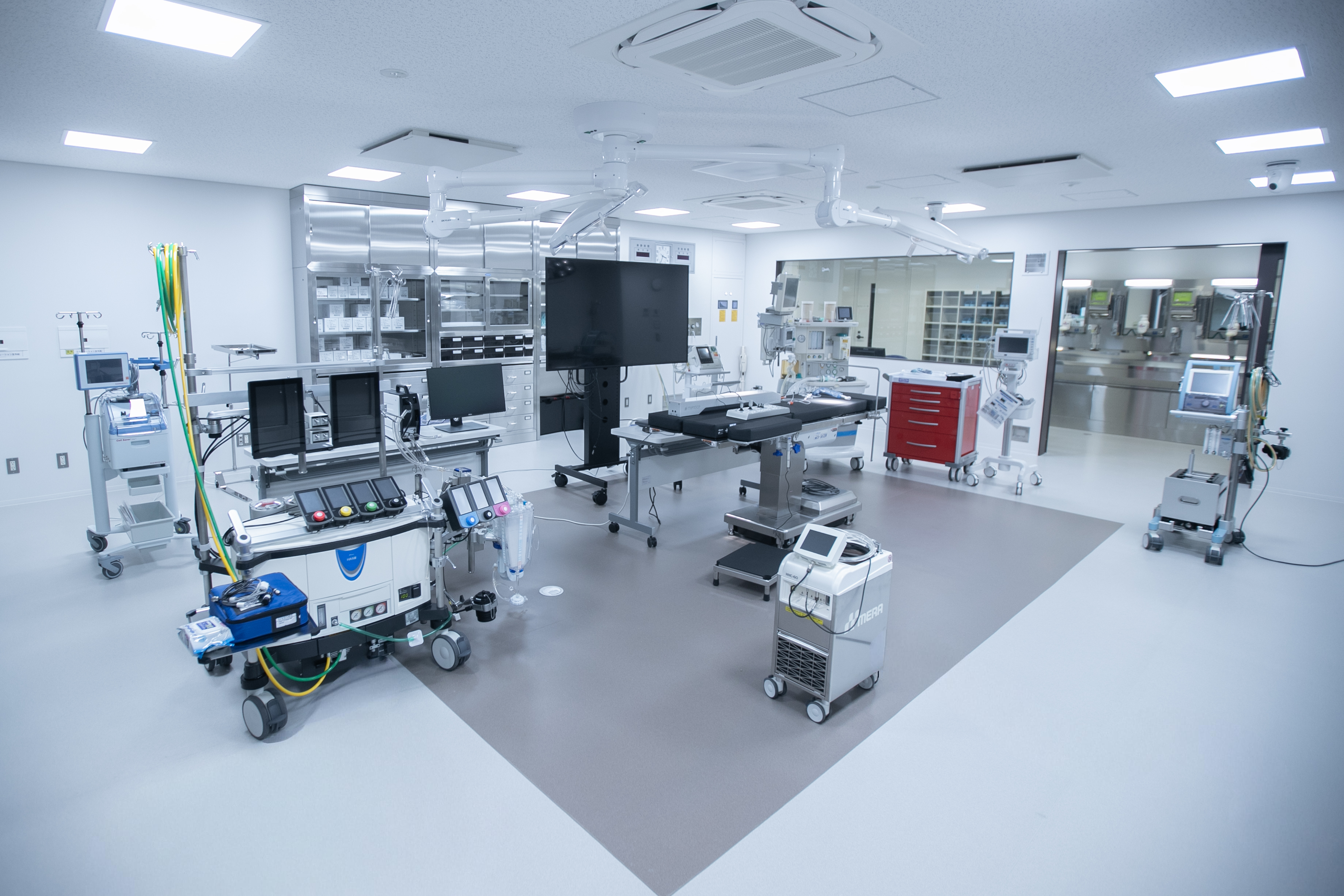 本ルームは、⼿術そのものを⾏う場ではなく、⼿術を安全かつ円滑に遂⾏するために不可⽋な医療機器・設備・環境に着⽬した実習空間として整備されています。