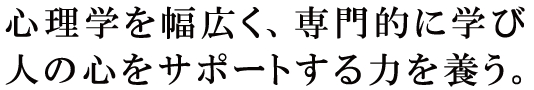 京都橘大学は、自然豊かな環境や、明るい雰囲気、そして少人数で授業がおこなわれることが魅力です。1、2回生では、臨床心理学領域、社会・産業心理学領域、発達・教育心理学領域、行動神経科学領域の4領域を履修し、幅広く学びます。将来、私は心身的に困っている人をサポートする仕事に就きたいと思い、先生方に相談をしました。そして、先生方のアドバイスを参考にして考えた結果、精神保健福祉士をめざすことに決め、学びを深めています。また、京都の文化や歴史を学ぶ授業があり、これまで知らなかった歴史を深く知ることができるなど、大学で学ぶことはさまざまな発見があります。