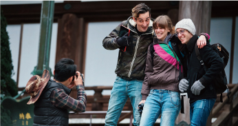 京都は外国人観光客が日常的にいるので、日本にいながら外国にいるようです。話しかける機会が多くもてるので、実践的なスピーキング能力を磨いています。また、海外の人に身近にある文化遺産を紹介することもあります。