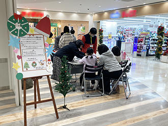 12月11日(土)、イオンタウン山科椥辻で「クリスマスリースづくりワークショップ」を行いました。このイベントは、学まちチャレンジ!プロジェクト(※)から発足したグループが、山科区における地域住民のつながりをより強めるとともに、季節を楽しむ文化的な生活の大事さを再認識してもらうことを目的としたものです。