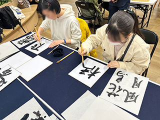 ※2 書道部の有志で結成されるチーム。O(おもしろい)S(しっかり学べる)J(字が上手くなる)の頭文字をとって名付けられた。2023年度は「楽しくしっかり学ぼう!!~地域に根づく書道~」をテーマに、地域の方に向けて書道を楽しく学んでもらうための書道教室や書道イベントを実施している。