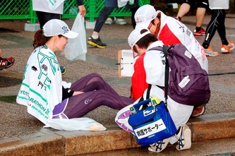 当日は、悪天候となりましたが、学生たちは、沿道からの応援や、体調の悪そうなランナーへの声かけ、救護処置などを懸命に行い、大会は無事に終了しました。今回の経験は、学生たちにとって、医療を学ぶことの大切さや、医療職に就く責任を改めて実感する貴重なものとなりました。