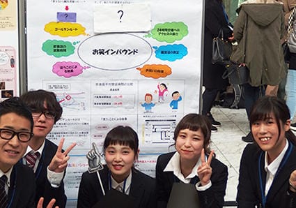 ポスター発表賞を受賞したのはチーム「福井ゼミB班」で、ナイトエコノミー※と大阪の観光資源である『お笑い』に注目し、「お笑いインバウンド」のタイトルで発表。夜の経済活動の活発化を図る観光プランとして、訪阪外国人旅行者に対し、梅田周辺でお笑いライブを夜(20:00~26:00)に実施できる飲食店を組み込んだ観光プランの提案を行いました。