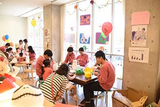 また、毎年恒例となった看護異文化交流・社会連携推進センター主催の「たちばな健康相談」では、約320人の地域の方々が参加し、各コーナーを回りながら学生との交流や参加者同士の会話に花が咲きました。児童教育学科学生が企画運営を行う「ちびっこランド」では、近隣の幼児・児童とその保護者約780人が訪れ、工作やゲームに夢中になる姿がみられるなど、いたる所で笑顔があふれる大学祭となりました。