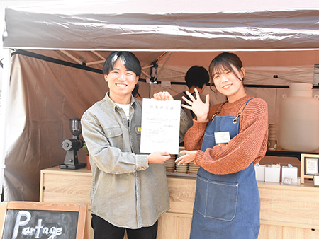 11月1日(水)、経営学部8名と国際英語学部1名の9名の学生が企画・運営する、テイクアウト専門カフェ「Partage」が学内にオープンしました。