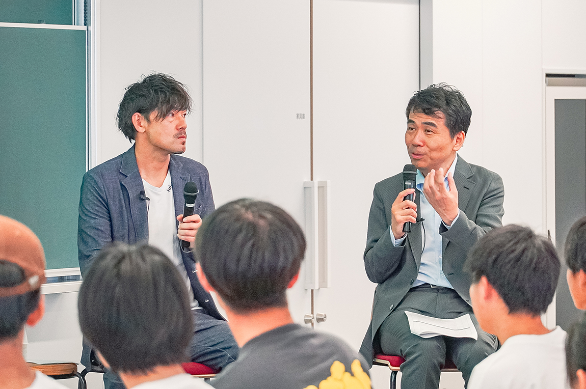 その後、大野宏之教授を交えて、社会におけるスポーツの価値や未来をテーマに、スポーツ経営学専攻開設に伴う背景やスポーツの価値、これらを学ぶ意識について意見を交わしました。