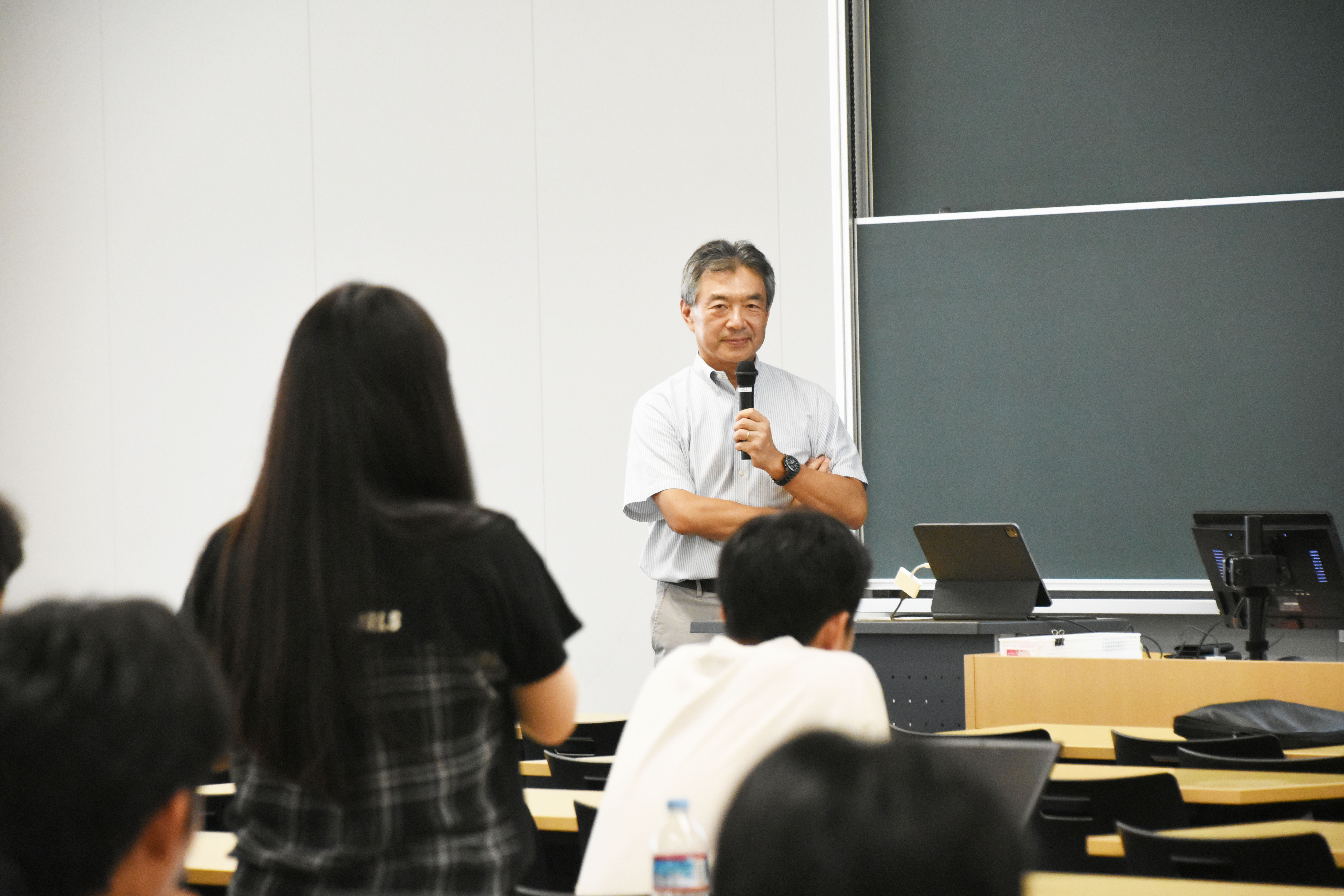 2025年9月29日(月)、工学部情報工学科の松原仁教授が担当する「産業と情報通信技術」の講義において、格闘ゲームで知られる株式会社SNK(以下、SNK)にて2021年10月より本年5月まで代表取締役社長を務められた、松原仁教授の実弟の松原健二さんをゲスト講師に迎え、特別講義を実施しました。