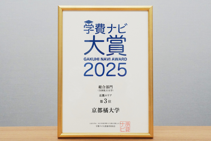京都橘大学は、「学費ナビ」(運営:株式会社アイガー)主催の「学費ナビ大賞2025」において、全国私立大学総合部門(近畿エリア)にて第3位を受賞しました。
