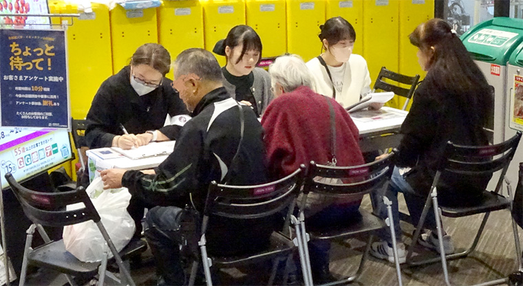 心理学科の専門科目「マーケティング調査演習」を受講する心理学科※の受講生が、イオンタウン山科椥辻店において、来店者を対象に調査を実施しました。
