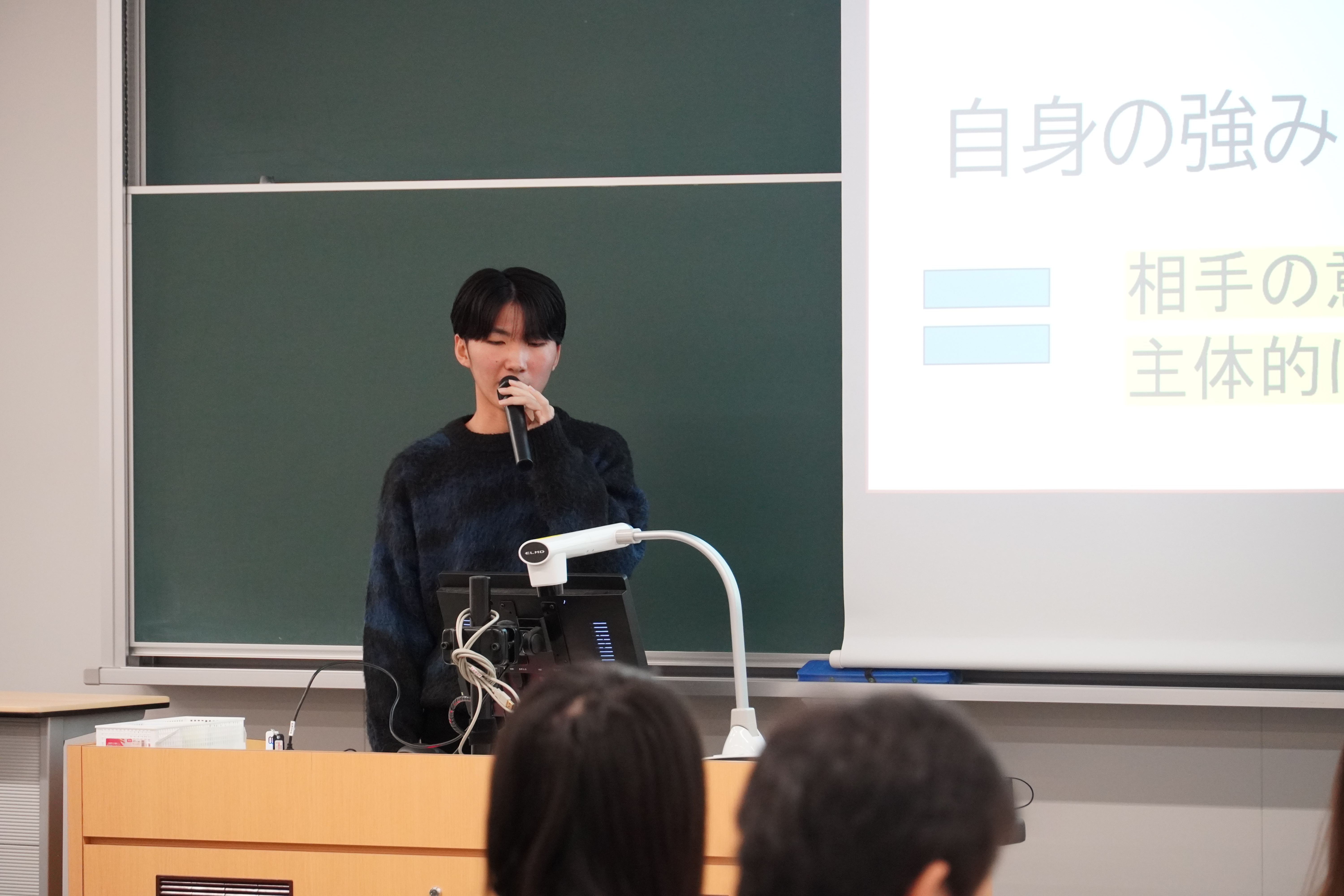 また、インターンシップⅠ※1からは伊藤光希さん(国際英語学科・2回生)、インターンシップⅡ※2からは山口奈々さん(経済学科・3回生)が就業体験報告を行いました。