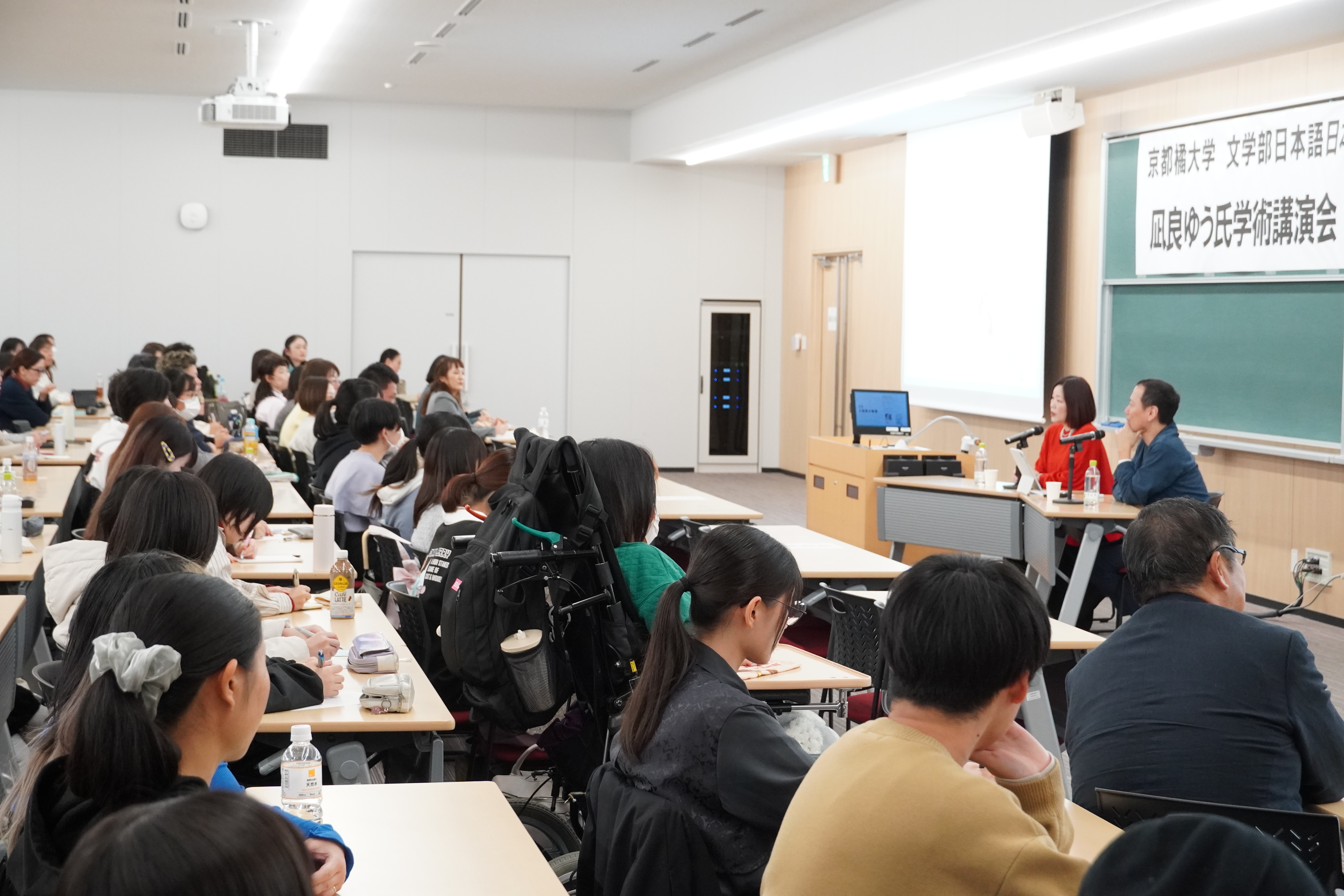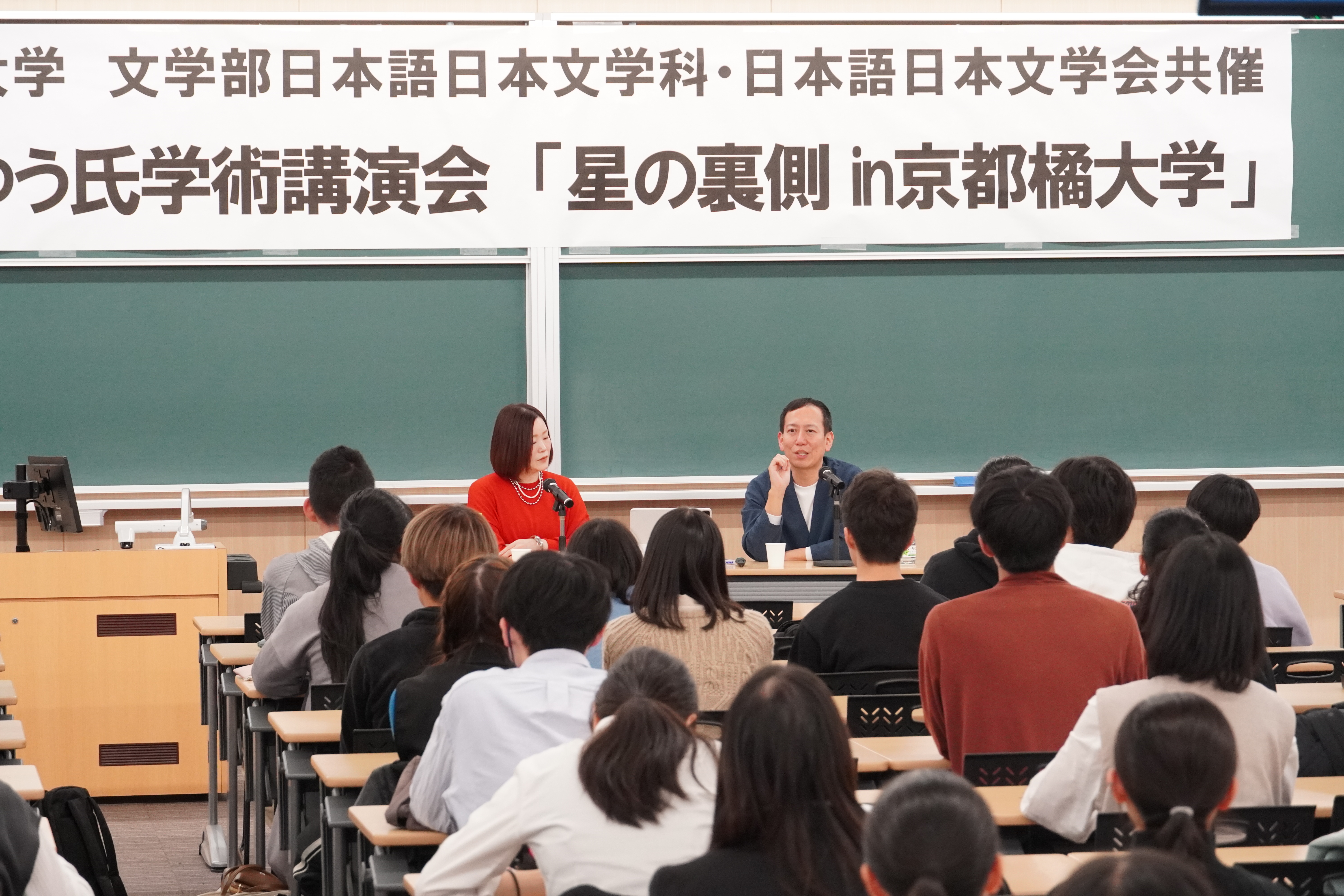 2025年11月6日(木)、小説家・凪良ゆう氏を講師に迎え、学術講演会「星の裏側 in京都橘大学」を開催しました。この講演会は京都橘大学文学部日本語日本文学科・日本語日本文学会が第一線で活躍する小説家の方々をお招きし毎年開催しているものです。