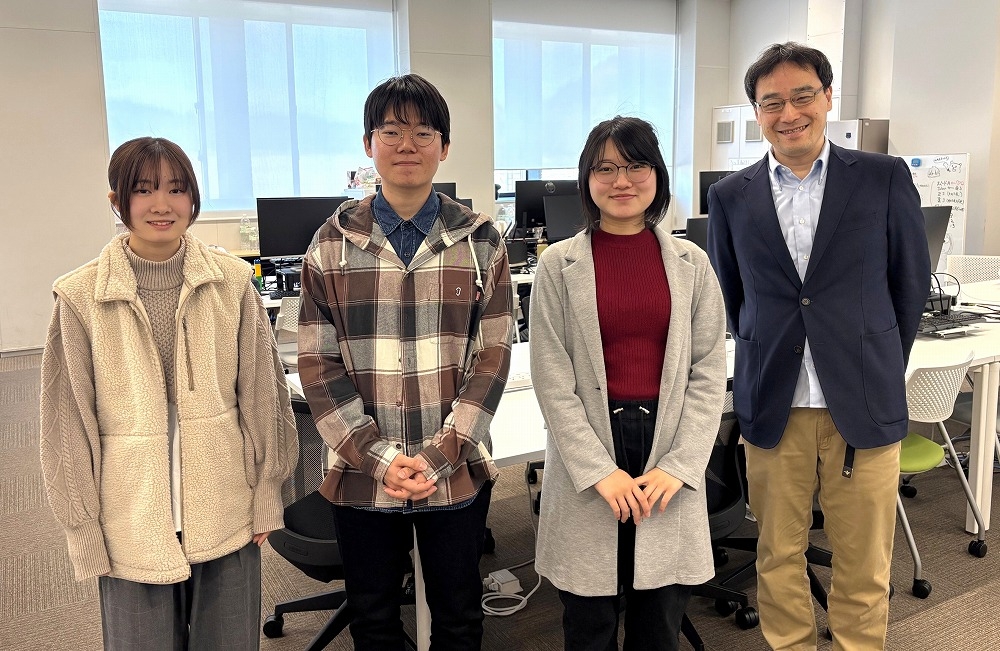 指導教員の西出准教授は「本学に着任して初めて国際学術誌に掲載されたことはとても嬉しいです。私はもともとロボットの研究者だったのですが、本学では学生がやりたいことを活かせるような研究をしたいと考えていました。最初は私自身もうまく研究が進められるのか不安な時もありましたが、試行錯誤しながら実験を進めることができました。学生も3人で協力しながら、それぞれの強みをうまく生かしており、順調に研究を進められていると思います。まだまだこの研究には解決しなければいけない課題がたくさんありますが、みんなで協力しながら一つ一つ取り組んでいきたいと思います」と振り返ります。