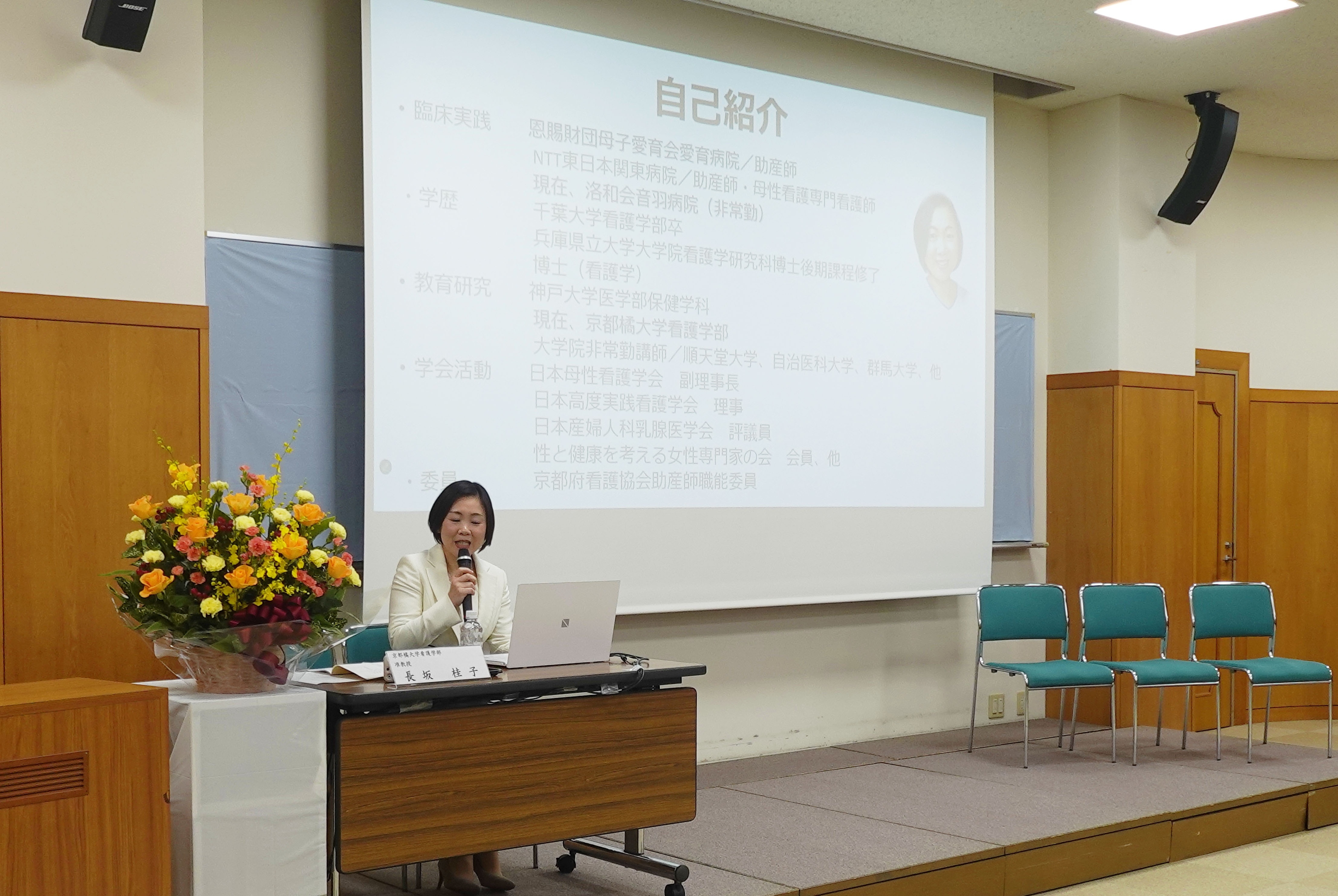 長坂准教授は母性看護専門看護師(CNS)かつアドバンス助産師として高い専門性を有し、周産期メンタルヘルスや妊娠期のケアなど母性看護において豊富な研究・教育実績を持つスペシャリストです。今回の講演では、「子どもの未来を支えるために知っておきたいプレコンセプションケア」をテーマに、くらしの変化や変わらない体の機能、医学の進歩を踏まえながら、妊娠前の健康管理について講演しました。