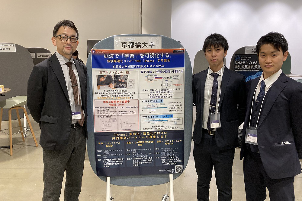 健康科学部理学療法学科の兒玉隆之教授が、研究室に所属する2名の大学院生(健康科学研究科D2伊藤大輝さん、同D1前田康太さん)を伴い、2025年12月4日(木)にTokyo Innovation Base(東京)で開催された「UniverSeeds EXPO 2025」(主催:関西イノベーションイニシアティブ(KSII)、三井住友銀行(SMBC))にて、特許技術の出展とプレゼンへの登壇を行ないました。