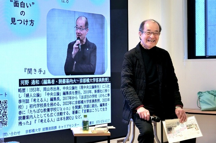 「出版業界は厳しい市場ですが、『本』との出会いには人それぞれのタイミングがあります。だからこそ、私たちは『一冊入魂』を掲げています。大切なのは、自分の心が"面白い"と思える環境をつくること。どう生きたいかは、自分の価値軸で決まります。『面白い』と感じる力を養うことが、人生を豊かにする鍵だと思う。」と、学生たちへ語りかけました。