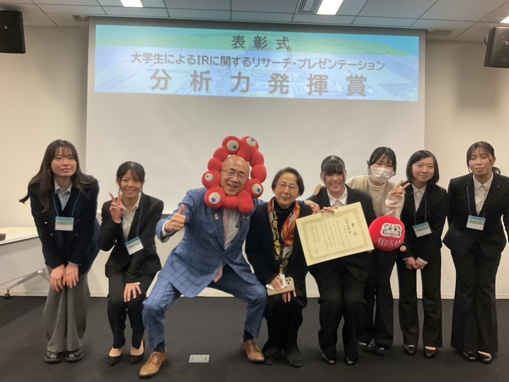 その中で、本学の樋口ゆかりゼミ3回生6名(瀧川愛華さん、千葉薫さん、香川心咲さん、藤井萌花さん、苗村明日香さん、吉村空さん)が研究発表を行い、「分析力発揮賞」を受賞しました。
