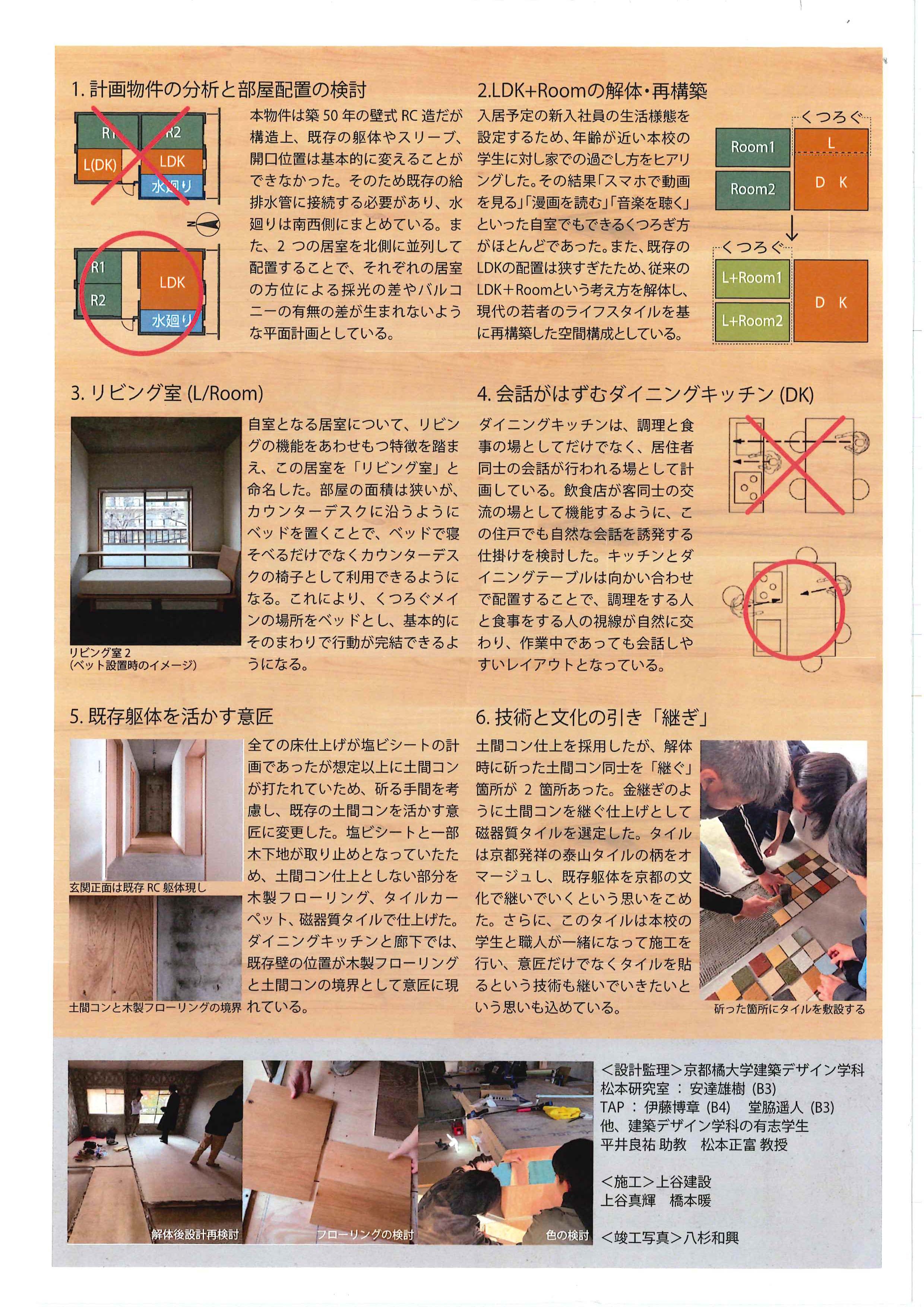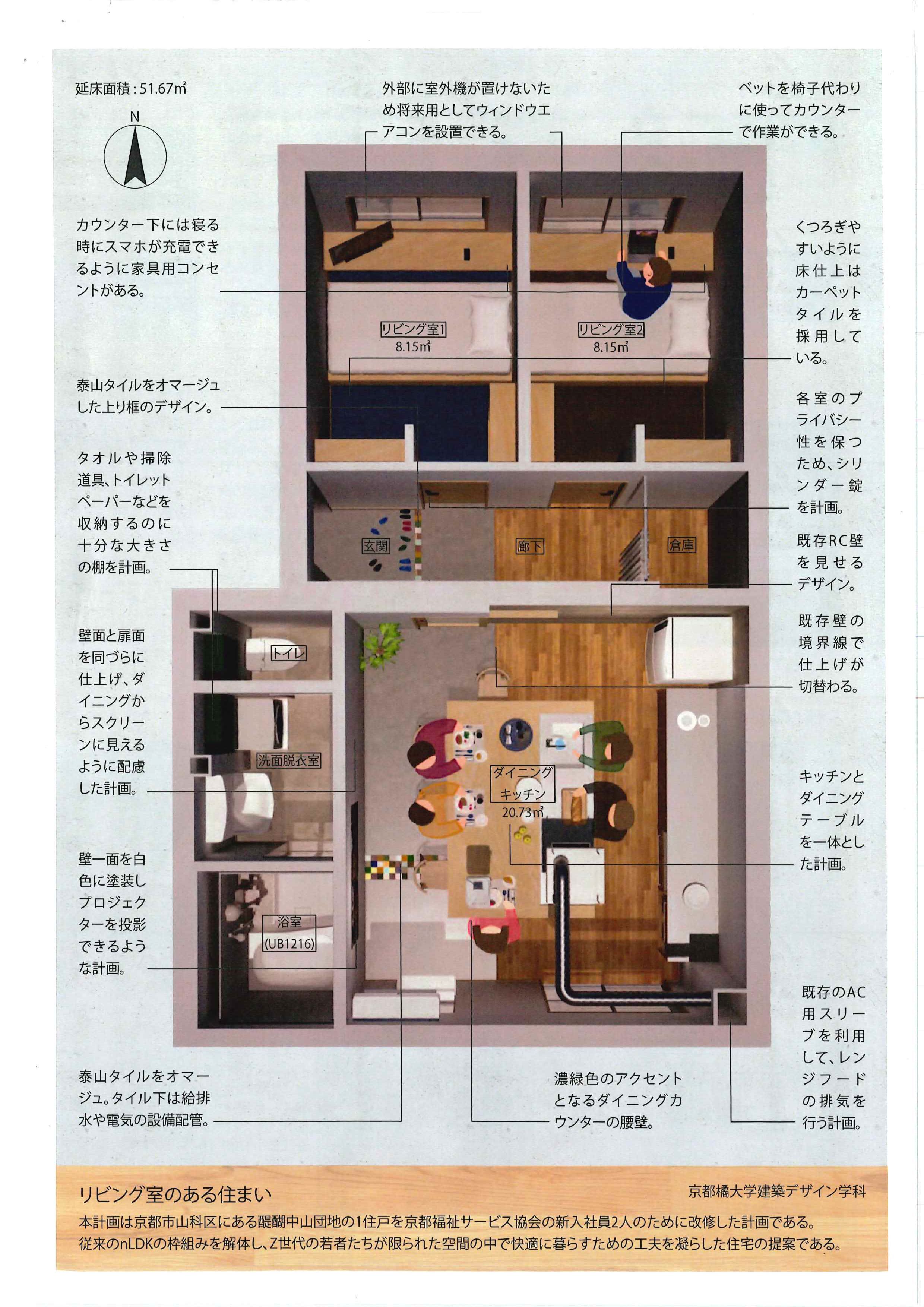 本学は、伏見区醍醐にある醍醐中山団地の1住戸を担当し、設計提案および改修に取り組みました。