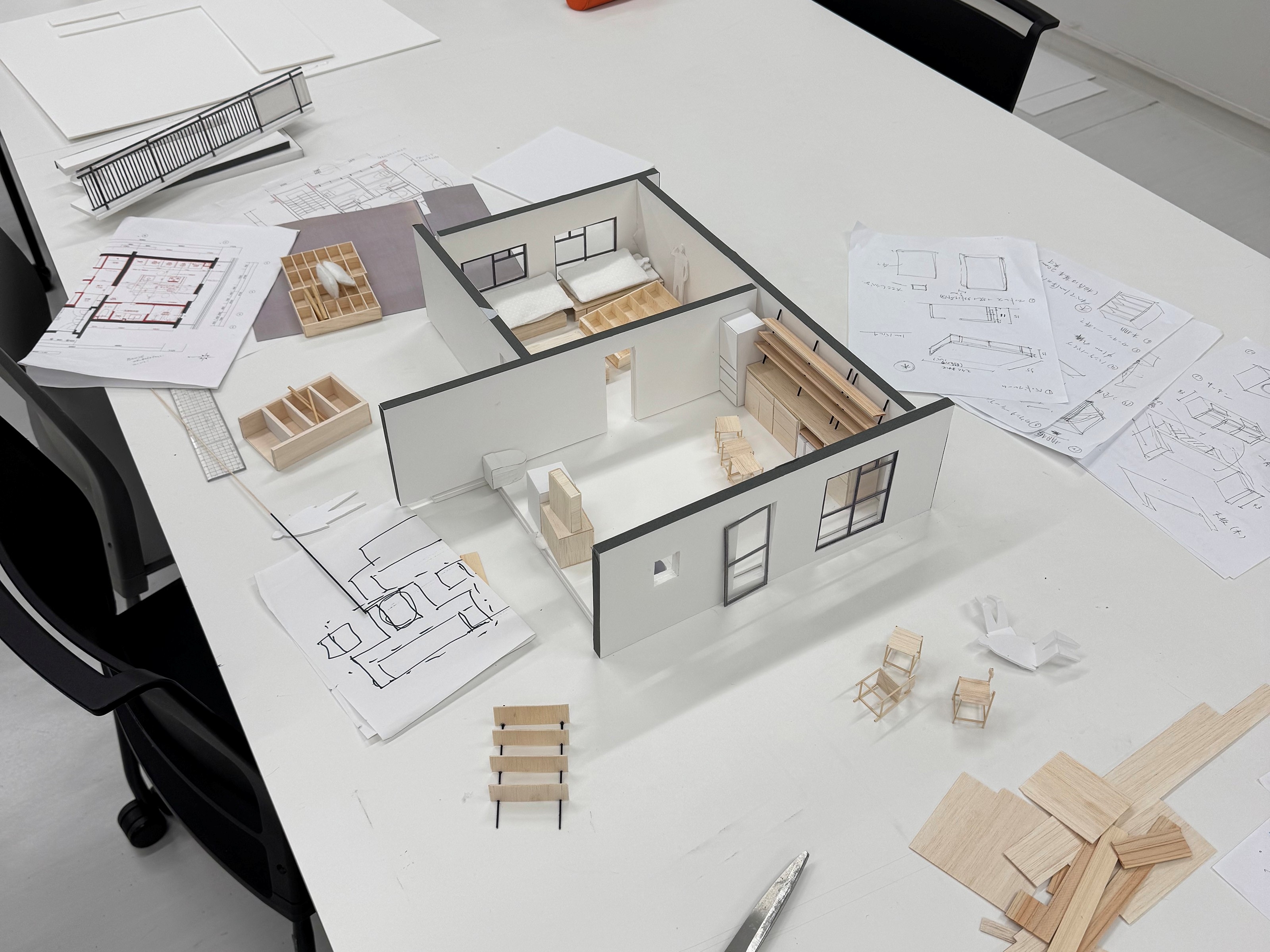 その後、2025年11月から工事が開始されました。現場では、学生が現場監督や職人と積極的にコミュニケーションを取りながら、住戸内部の解体後、予算の範囲内で計画の見直しを行い、工事を進めていきました。