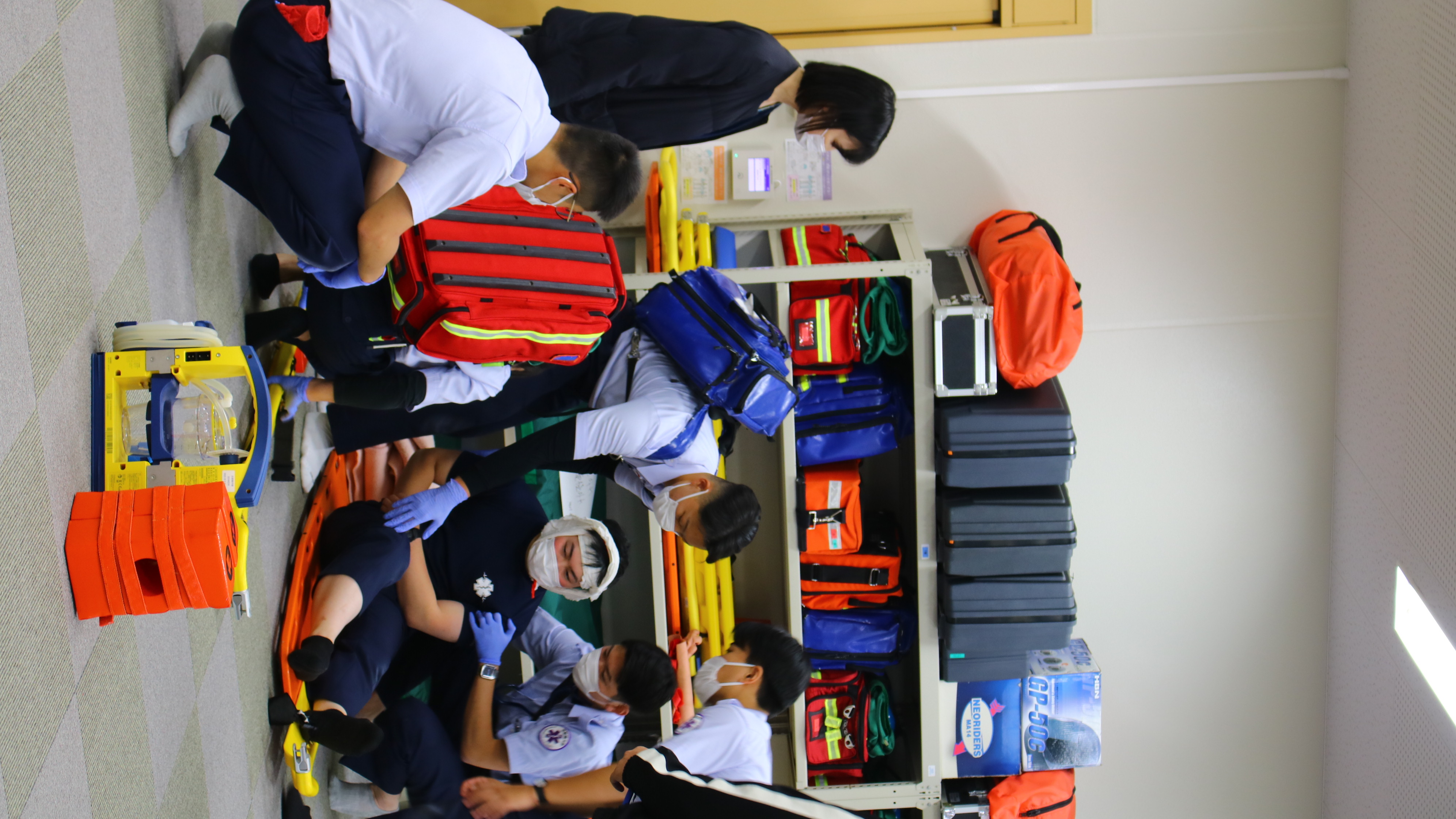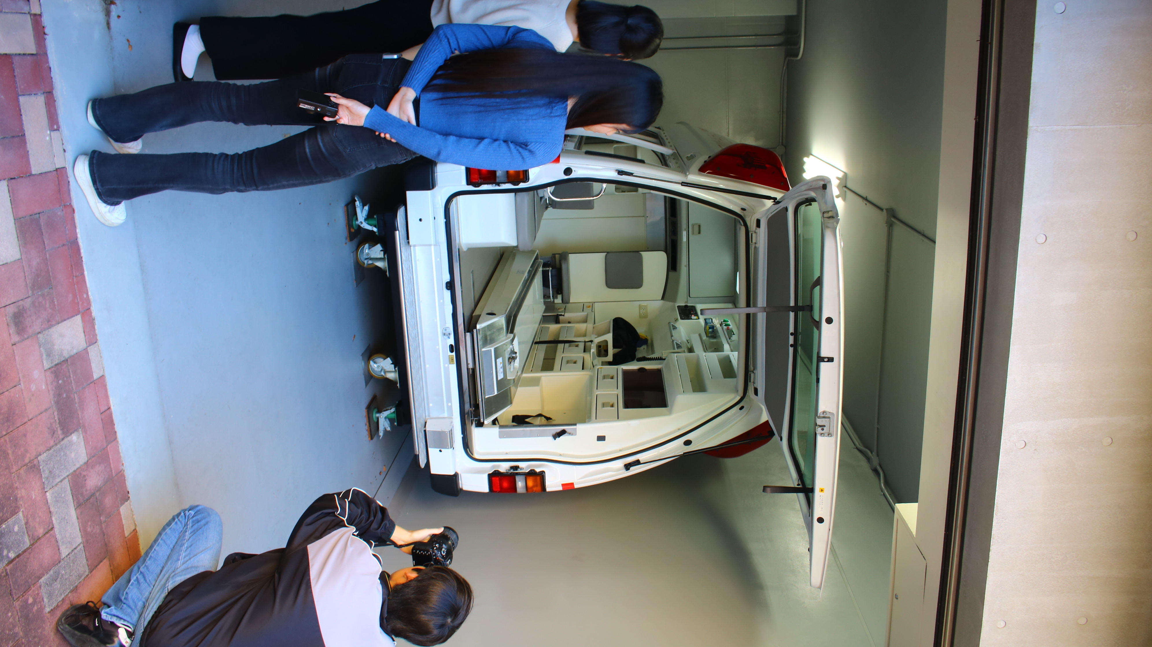 - 後半は、カメラ経験のある広報スタッフメンバー・しゅうすによる写真撮影ワークショップを開催。F値やISO感度、シャッタースピード、構図といった基本的な設定についてレクチャーを受けた後、理学療法学科の研究室や、臨床検査学科の脳波測定ができる実習施設、救急救命の実習も見学させていただき、 普段はなかなか入れない学内スポットをめぐりながら、実際に撮影に挑戦しました。普段カメラを触ったことがないスタッフも興味津々・・・!